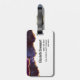 Personlig bagagetapp med en abstrakt utformning med blå och lila lagrar med faux guld foil rosett band däremellan.