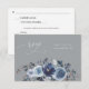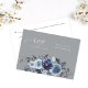Skicka en roligt och elegant, ett modernt OSA- eller målkort för blå och marin Blommigt med inbjudningar till bröllop och party inklusive Studentfester. Se vår samling för ett alternativ utan måltiden. Med handmålade, vattenfärgade, marinblå, dammblå och ljusblå blommigtar.