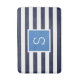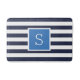 Anpassningsbarnas monogrammerade badmatt med en vallmo rand mönster i marint, blått och vitt färg. Anpassa den med ditt monogram som första steg i ett kvadratiskt ram. Använda designen verktyg om du vill välja valfri färg, redigera texten typsnitt och färg och lägga till egna foton för att skapa en typ av design som matchar vilken badrumsdekoration som helst.
