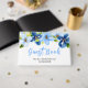 Blå och marinblå blommor med blad bröllopsfest gästböcker
