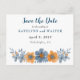 Dessa specialtryckta vykort är perfekta som "spara datum"-kort till bröllop. De har en vattenfärgblomma i mjuka, dämpade nyanser av blått och orange, vilket gör dem perfekta för höstbröllop och speciella evenemang. Använd mallfälten för att enkelt anpassa dessa svars kort med din information. Har du mer information som du behöver inkludera? Välj alternativet Anpassa för att lägga till ytterligare text på dessa vykort.