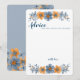 Blå och orange blomsterbröllopskort utan linjer rådkort