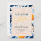 Blå och orange botanisk citrusinbjudan med tema inbjudningar