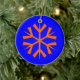 Den här blå prydnadsfärgen har en skarp snöflinga i orangen på vardera sidan. Lägg till text i det här anpassadets dekoration för den personliga beröringen.