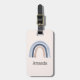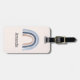 En bagagemärke med söt och vismisk regnbåge. Blå och persikofärgade vattenfärger.