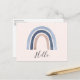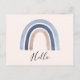 Ett vykort med en söt och fantasifull regnbåge. Blå och persiko akvarell.
