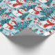 Blå och röd jul-Snögubbar Presentpapper