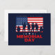 Det här djärva vykortet fångar essensen av minnesdagen med sin slående blå bakgrund och den kraftfulla bilden av silhuetter av soldater mot bakgrund av en amerikansk flagga. Designen genljuder av semesterns anda och betonar minne och heder med framträdande text som sticker ut i krispig vit och röd. Stjärnor längst ner tillför ett sista streck till temat, vilket gör det här vykortet till en respektfull hälsning till militär personalens mod och uppoffring.