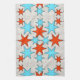 Blå och röda stjärnor med vit gråaktig bakgrund
