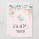 Blå och Rosa Baby Flaska med blomma Gräns Spara Datumet