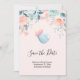 Blå och Rosa Baby Flaska med blomma Gräns Spara Datumet
