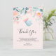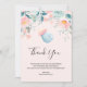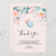Tack för ett kort med en söt bild av ett ljusblått baby flaska med rosa fälg. En rosa och grönt blommigt gräns tillför lite elegans.
