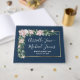 Med en spray av silver-dollar och med eucalyptus över en marin blå vattenfärg tvättar bakgrunden med gräns i guld. Utformningen har också elegant blommigt inslag av rosor och peonier i dammig ro eller rosa för ett unikt utseende.