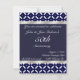 Denna vackra jubileumsinbjudan är perfekt för din bröllopsdag, den har ett blått och vitt geometriskt mönster överst och nederst. En solid blå mittdel har vit text redo för din anpassade festinformation. Silverband löper längs med över- och underkanten för att ge den gnista. Anpassa den för att passa dina festbehov.