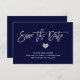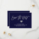 Den här eleganten och det visuella sparandet av datumkortet utan fotofunktioner ser faux silver modern skripttypografi och ett romantiskt matchande hjärta på en mörk, marin blå bakgrund.