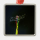 Blå och svart Dragonfly på grönt och rött gräs Julgransprydnad Metall