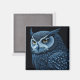 Ai-konst skildrar ett allvarligt tittar majesblått och svart uggla med nattebakgrunden himlar.