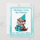 Födelsedagsinbjudningar till en pojkes födelsedagsfest. Stå tecknad i blått och turkos med födelsedagskalas, födelsedagshattar med gåvor och bara vara toppen söt!