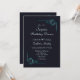 En elegant vid midnattsblå överraskning 50-dagars middagsinbjudan med turkos eller blommigt löv förskönade hörnen till ram om inbjudningsdetaljerna.