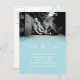 Det här enkla Spara datum meddelande-vykortet är perfekt för de par som vill framhäva sina nya förlovning-foton. Även om exemplet är i svartvitt ser layouten underbar ut även med bilder från färg utomhus.