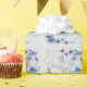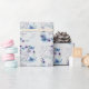 Blå och violett halvgenomskinlig vattenfärgblomma och grönt på en elfenbensformad papper struktur (skapat till ge med utseende av handgjord papper) med en diamantformad mittpunkt med guld-ram. Det finns tre ställe som Namn-åldern och budskapet visas - Grattis på födelsedagen-budskapet, Namn och åldern är alla anpassade - ändra ett och de förändras alla - detta ingår också i en Möhippa Bröllop Stationery-samling av BarefootBride™