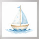 Blå och vit akvarell segelbåt – Baby present med n Poster