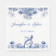 Skapa några personlig pappra blöjor som ser ut som antika chinor. Dessa servetter är redot att vara personlig med namnen av bruden och brudgummen och deras bröllop-datum eller med ert eget anpassningsbar-budskap. Den har en blå och vit blommigt och fåglarmotiv som är gjord för att se ut som china tallrikar för party förråd med en elegant.