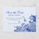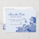 Blå och vit Blommigt Chinoiserie Spara datum Vykort