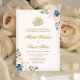 Blå och vit Blommigt Guld Design Islamiska Bröllop Inbjudningar