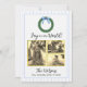Det här klassiska julkortet har en ljusblå och vit prick i gräns med en vattenfärgad krans med blå bog. Anpassa med egna foton från namn och familj. Läser "Joy to the World"! Baksidan har en ljusblå och vit florand: "För unto you är född i dag i David a Savior, som är Herren. Luke 2:11"- lämnat som mall så att du kan anpassa dig med en annan vers eller ett annat ordspråk.