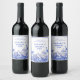 Dessa vinetiketter för bröllopsfest har en monokrom design med en blå och vit teservis omgiven av fåglar och blommor. Överst står det "Tack för att ni firar" med en plats för att anpassa med namn och evenemang.