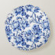 Blå och vit blomstertoalettbröllop rund kudde