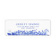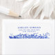 Blå och vit blomsterval till bröllopsfest returadress etikett