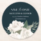 Papper från Blå och Vita Bröllop spara datum-rundan Underlägg Ett modernt datum i ett unikt underlägg format designat på en klassad marin blå bakgrund och med en bukett av vit ros vid grund. "Spara datumet..." visas längst upp på din underlägg i vitt block och skriptbokstäver, med bröllop-datum och bröllop i mitten. Använda den extra textraden till bröllop webbplats eller ytterligare information. Ändra färg i bakgrunden och teckensnittet enligt dina önskemål.