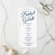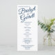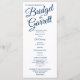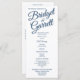 Elegant Designer-bröllopsprogrammet är marint blått över det vita utskrivna rackkortet med helt anpassade och alternativ för färg. Markera bakgrundsfärgen färg och färger som ska matcha valfritt bröllop.