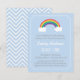 Elegant och klassisk inbjudan till baby shower. Den har en regnbåge och moln över en pastellblå kant för anpassning av dina festsdetaljer. Baksidan är ett blått och vitt chevronmönster.