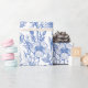 Blå och vitt chinoiserie-decoupage-inpackningspapper för eleganta shower, bröllop, presenterande evenemang och hantverk.