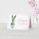 Detta påskkort har en söt kanin grön topiary med rosa band i en blå och vit chinoiserie kruka. Personifiera högtidsmeddelandena på framsidan och insidan med ditt val av speciell text.