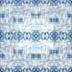 Blue and White Chinoiserie Mönster med geometriska och botaniska blommor och Löv.