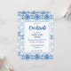 Blå och vit geometrisk blomsterchinoiserie inbjudningar