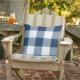 Pillow-designen har en avslappnad gingham plaid/check mönster som är perfekt för sommartid! Observera att du kan anpassa den marina blå bakgrunden färg för att samordna med din utomhusdekoration.
