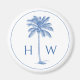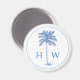 Den här kustinspirerade monogrammade magneten har en klassisk palmetto träd i handflatan i blått på en vit bakgrund med ett monogram som du kan anpassa med ditt val av initialer. Underbar för monogram party favors och monogrammade presentsäckar.