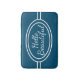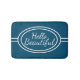 Badmat med blå bakgrund och vit design med ord Hej vacker