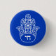 Blue and White Jewish Hebrew Chai Hamsa Star of David Button.