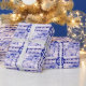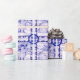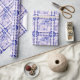 Denna blå och vita kanindesign färgades ursprungligen för hand på keramiska plattor, så du kan se plattorna. Det fungerar vackert som en papper utformning. Den monokroma designen har en bunny i en snöinställning som gränsar till fler bunnier och snöflingor.