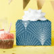 Elegant vit konst decogeometriskt mönster över utbytbar blå bakgrund.