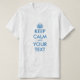 Blå och vit behålla lugn och text T-tröjor. Gör din egen behålla lugn till skjorta med blå krona. Anpassa mall. Behållans lugn och fortsätt med t-shirt maker. Anpassadet KeepCalm T-skjorta med coola royal blue brev. Anpassa krona och text med ditt eget roliga citat eller humoristiska ordspråk. Utforma din egen keepcalmandcarryon-skjorta lätt och snabbt.