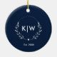 Blå och vit marin | Modern Initialer Monogram Julgransprydnad Keramik