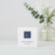 Chic- och professionell - affärskortets blå och vita fyrkantiga design har ett modernt fyrkantigt inslag som innehåller ditt första monogram, med ditt namn och titel eller ditt företags namn under i contemporaryns gemener. Anpassa den omvända sidan med kontaktinformationen i matchande marin. Ett modernt val för alla yrken, ett urval för verkliga gods eller verkliga agent.