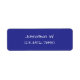 Du kan redigera den vita texten för att visa rätt namn och telefonnummer. Returadressetiketten är blå.